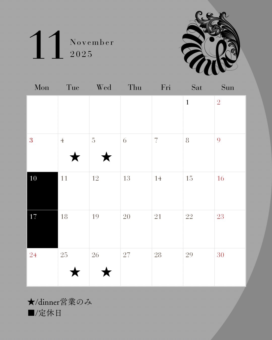 2025年11月の営業日については以下のカレンダーをご確認ください。