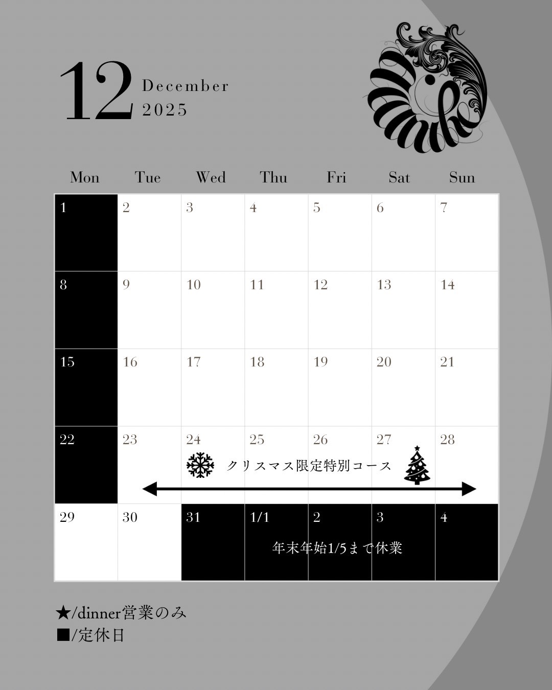 2025年12月の営業日については以下のカレンダーをご確認ください。