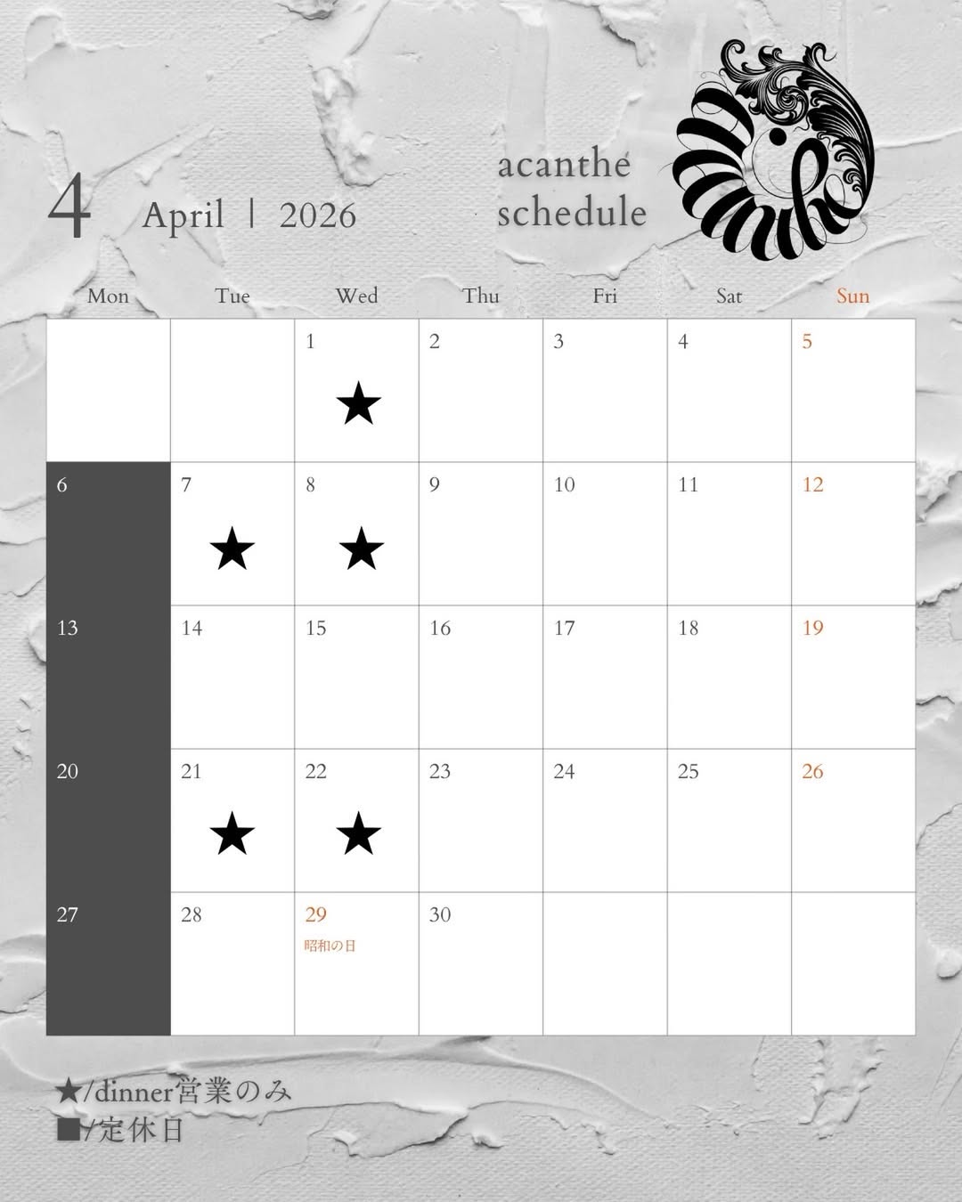 2026年4月の営業日については以下のカレンダーをご確認ください。