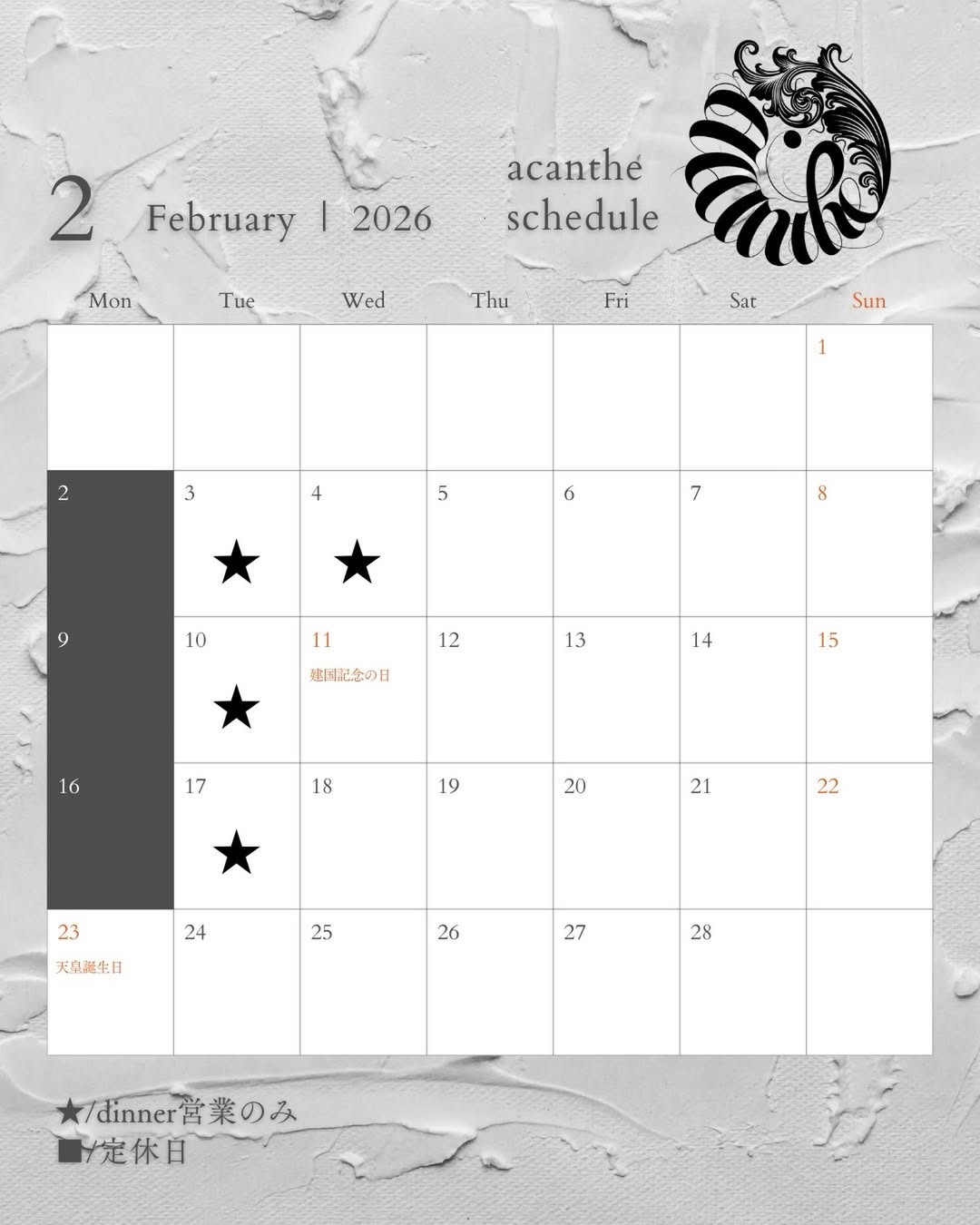 2026年2月の営業日については以下のカレンダーをご確認ください。